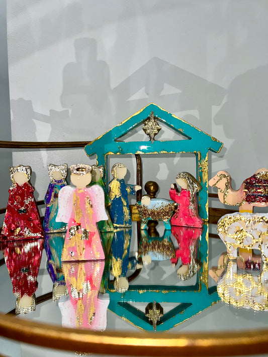 I’m a self taught artist. I have loved glitter and all things that sparkle since I was a little girl. I began painting angels on scraps of wood from our house build that I designed and decorated and I knew I wanted to use the talent God blessed me with to share my light with others.