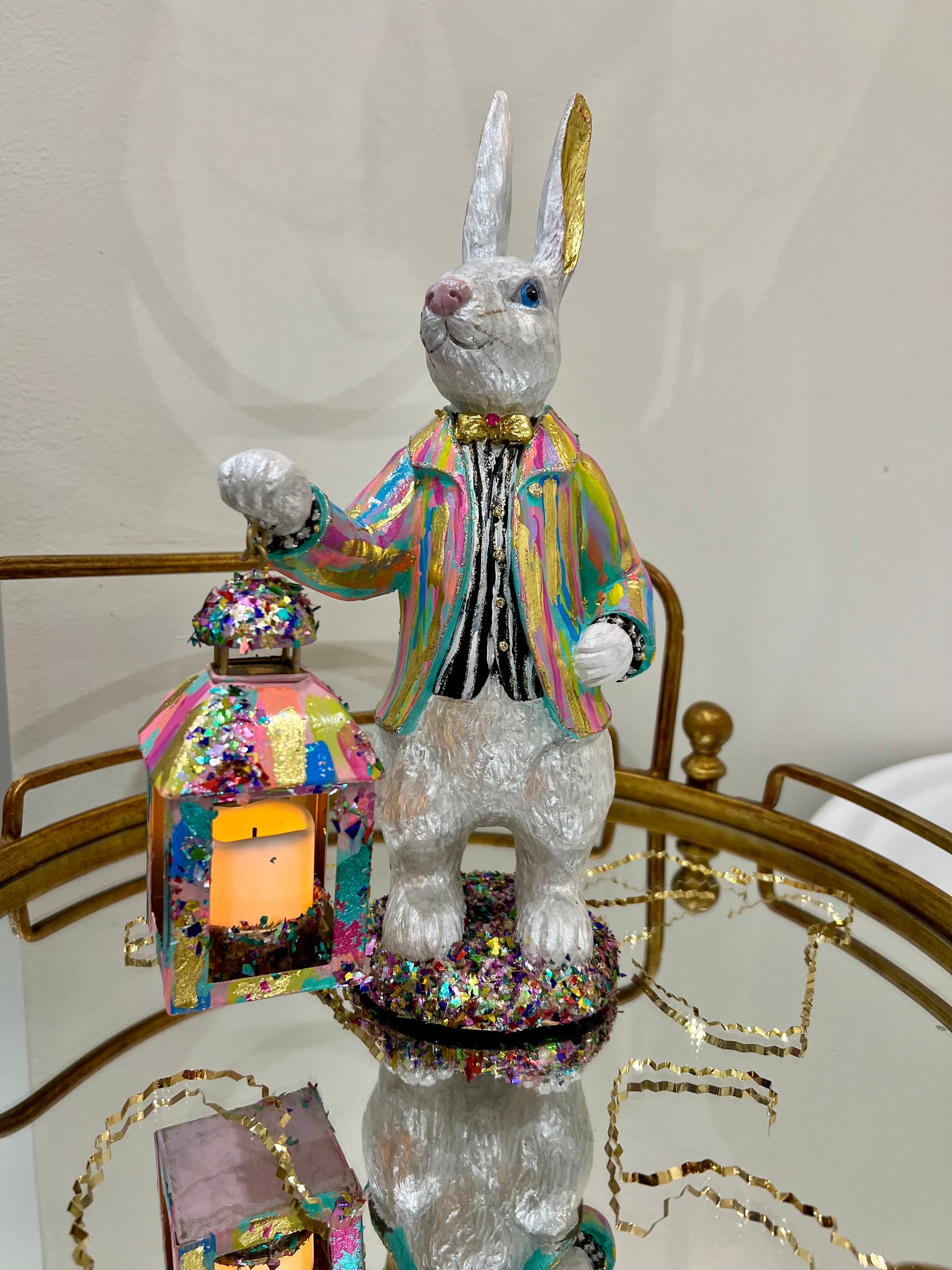 The Rabbit Dimension: 5.9 x 5.3 x 13.2 inches. The Lantern Dimension: 2.6 x 2.6 x 5.1 inches.