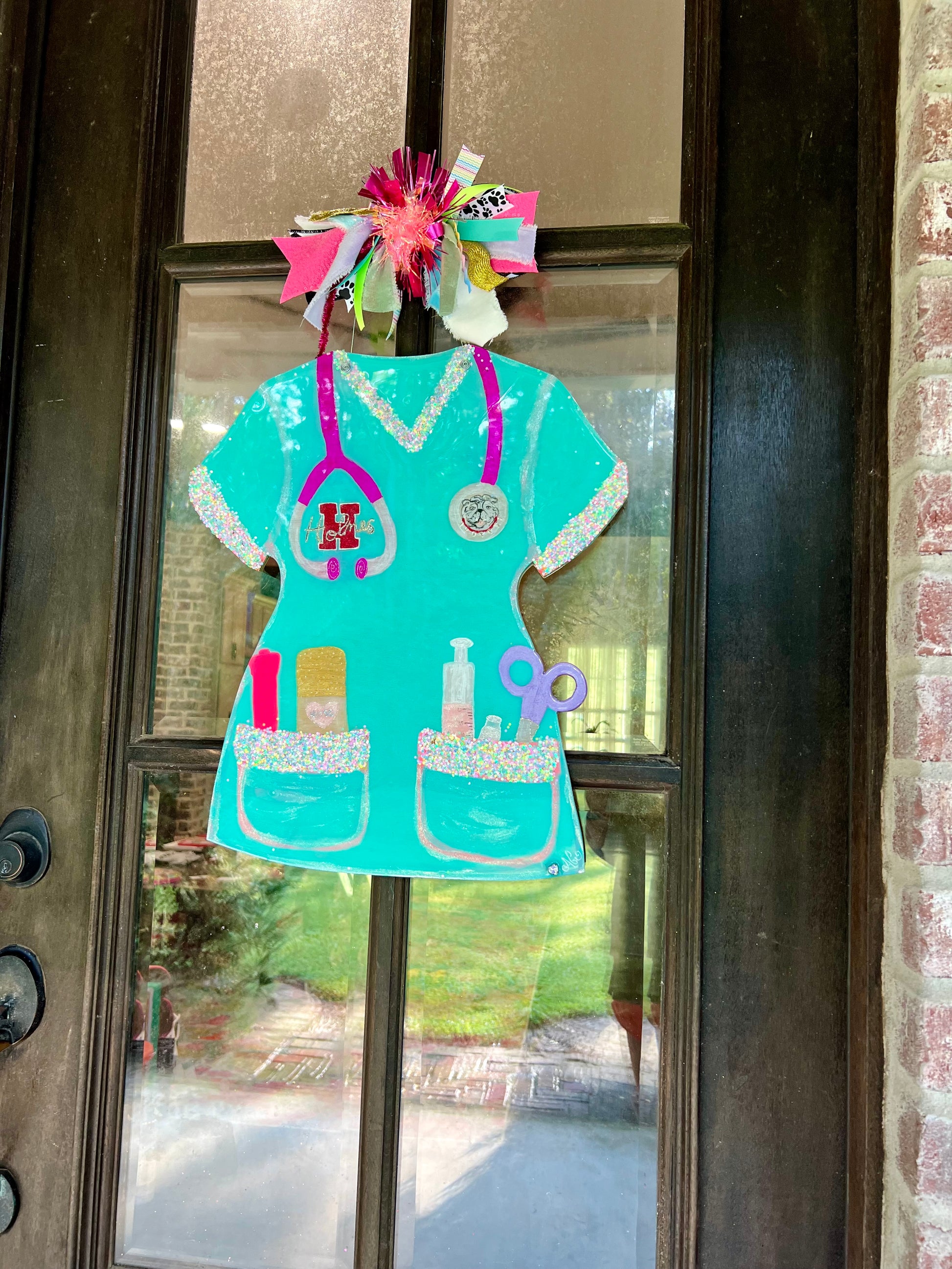 27” length (top of bow to bottom of scrub top) Can be customized however you’d like!