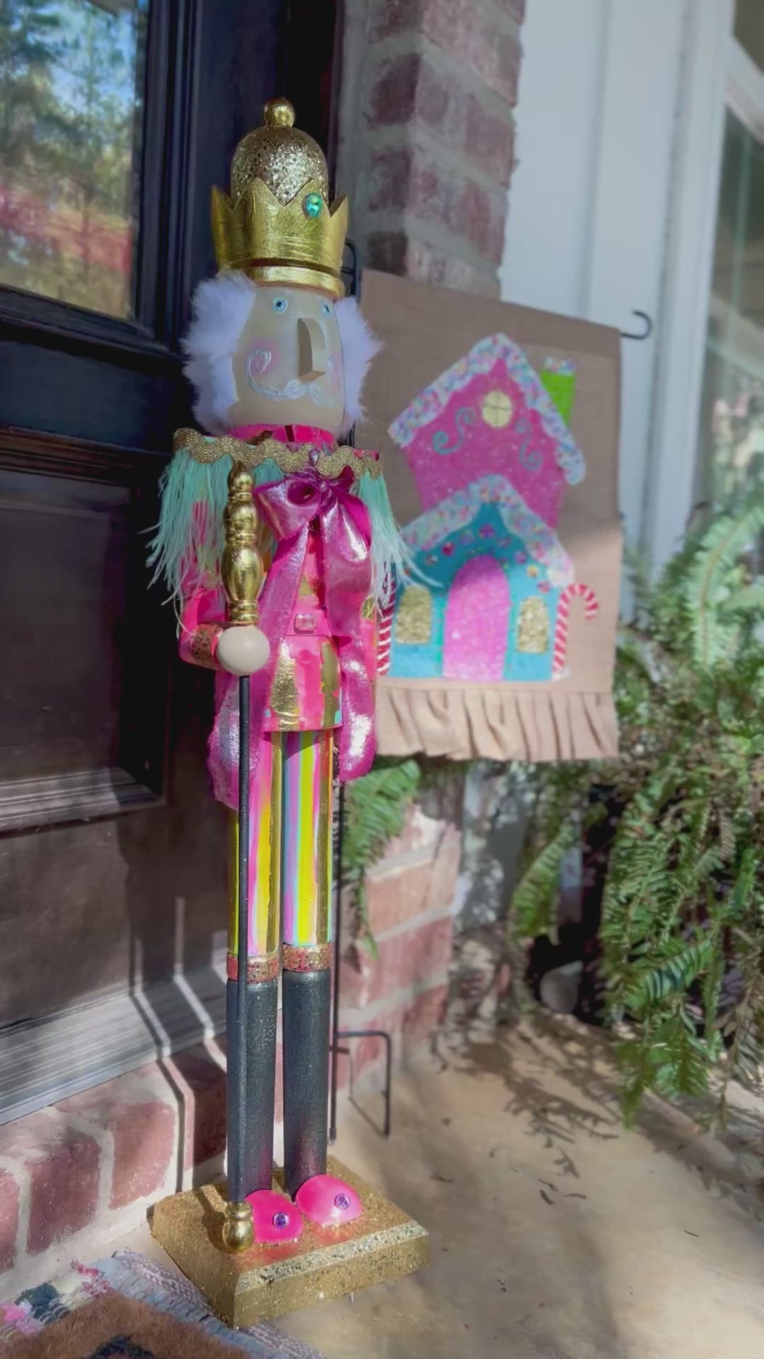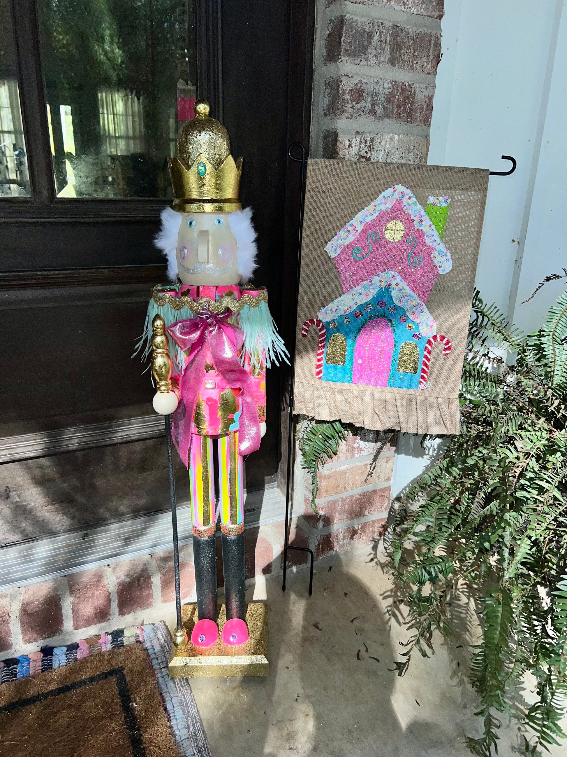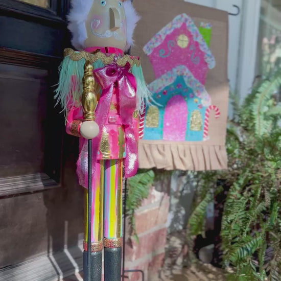 Hand painted 3 foot tall nutcracker with beautiful embellishments (jewels & feather sash)